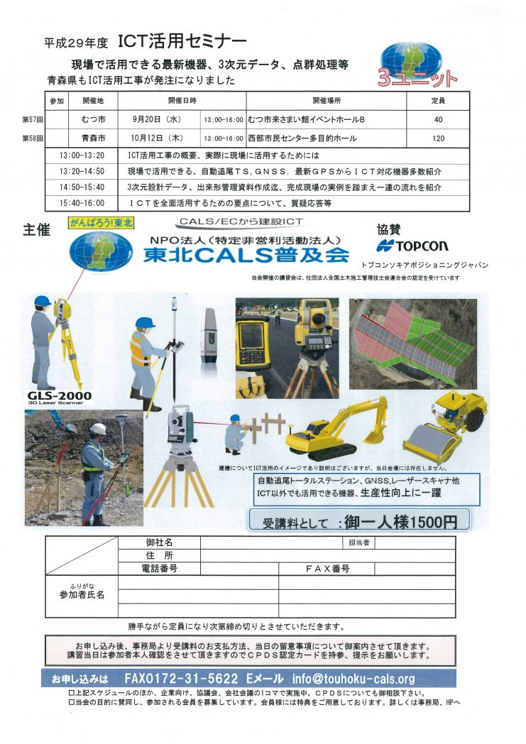 詳しくは下、新聞切り抜きをご覧ください。 お問合せ・申し込みは、NPO法人・東北CALS普及会 電話0172-31-1755 FAX0172-31-5622 申込用紙はこちら 記事は日刊青森建設 ... 続きを読む