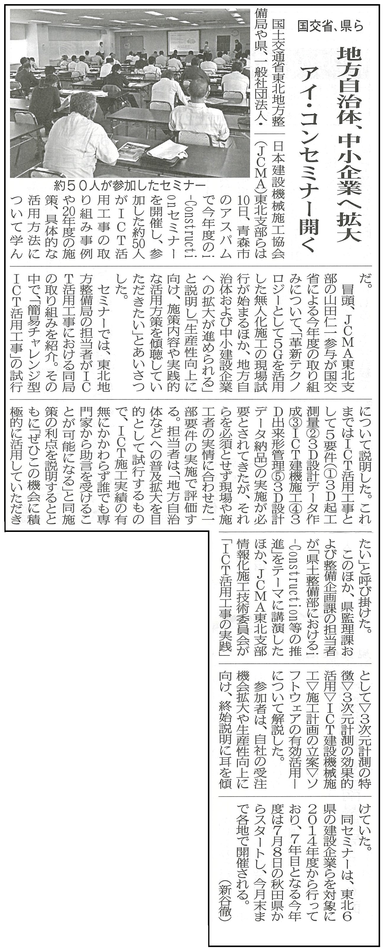 7月14日の日刊建設青森さんの記事に、簡易チャレンジ型ICT活用工事について掲載されていて、簡単に言えば全部やらなくても