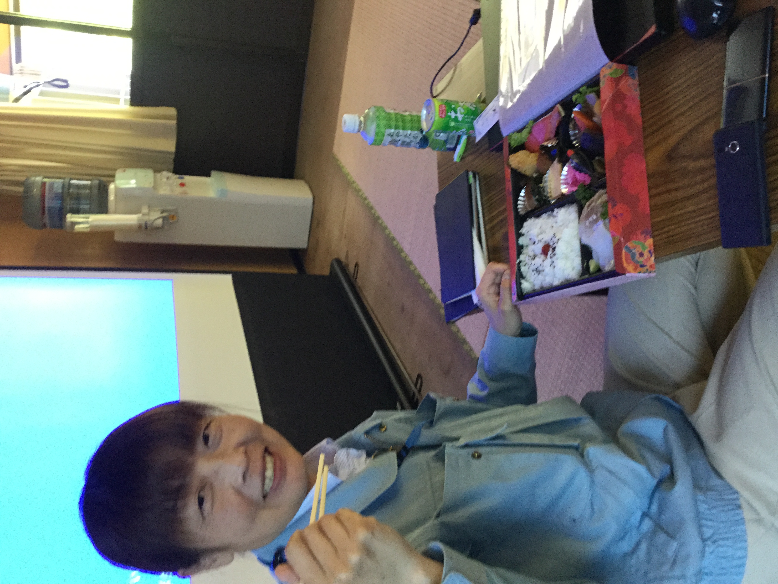 お昼のお弁当をいただきましたの『ドヤ顔?』須藤副理事長です。