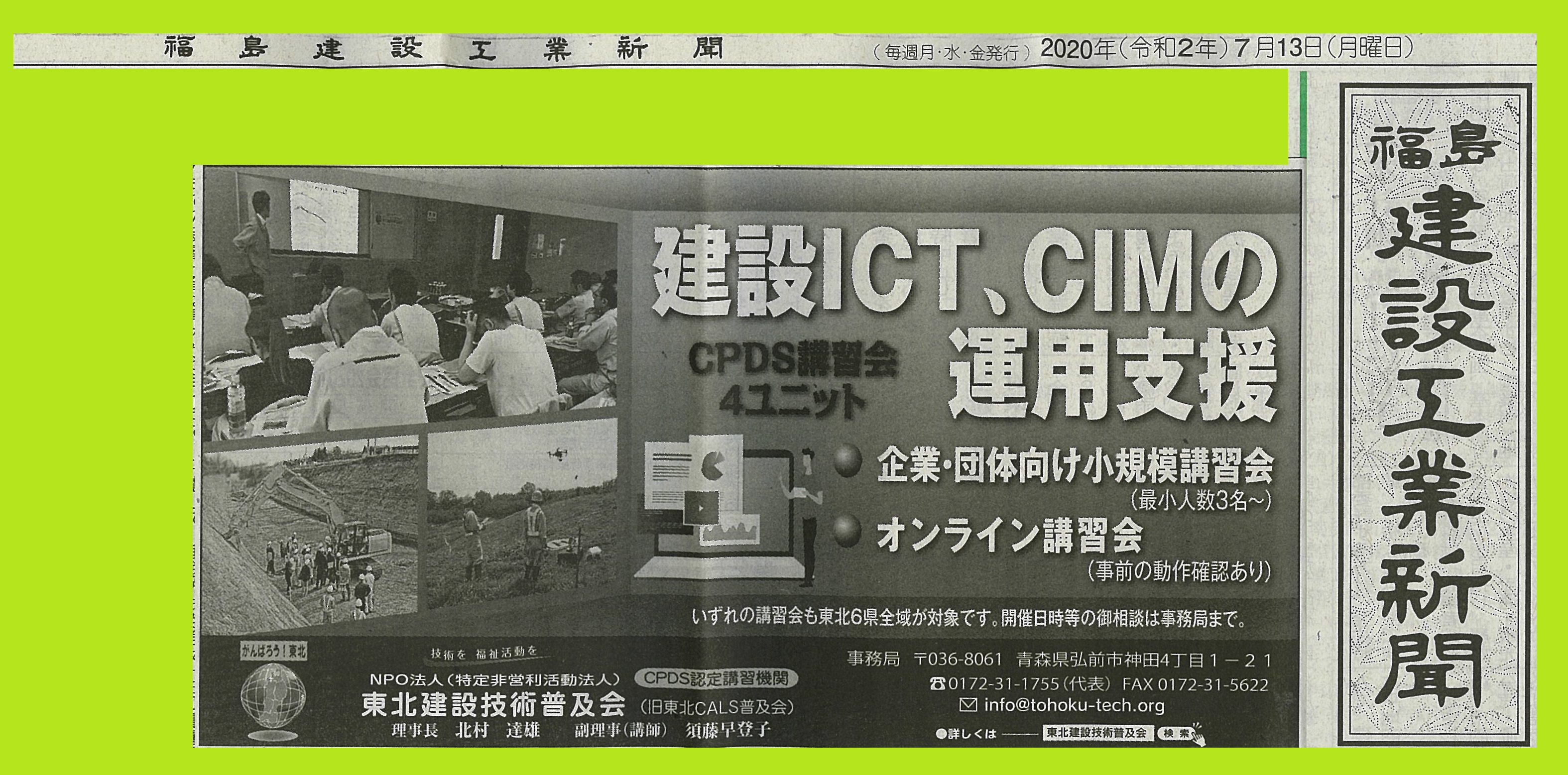 東北各地の企業さんに最新技術とCPDSポイント。。。UAV・3Dレーザー・三次元モデルCIMの運用。。。最新技術情報など最新機器を持ち込み現場経験者を講師に。。。よろしくお願いします。0172-31-1755・・・事務局三浦・櫻庭