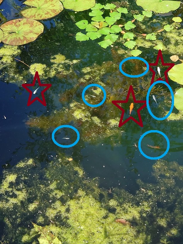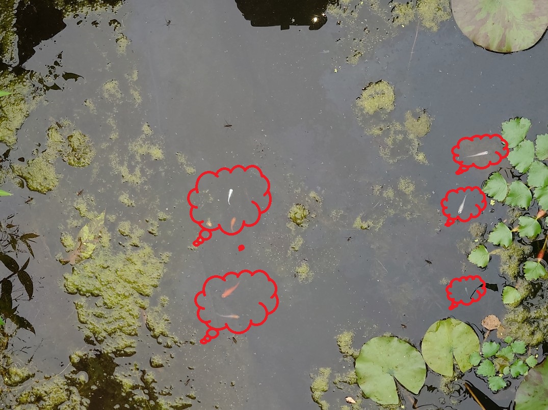 今年は池の藻の掃除をせずに井戸水を少し多めに流しメダカの稚魚とドジョウ・タニシの繁殖を始めました、