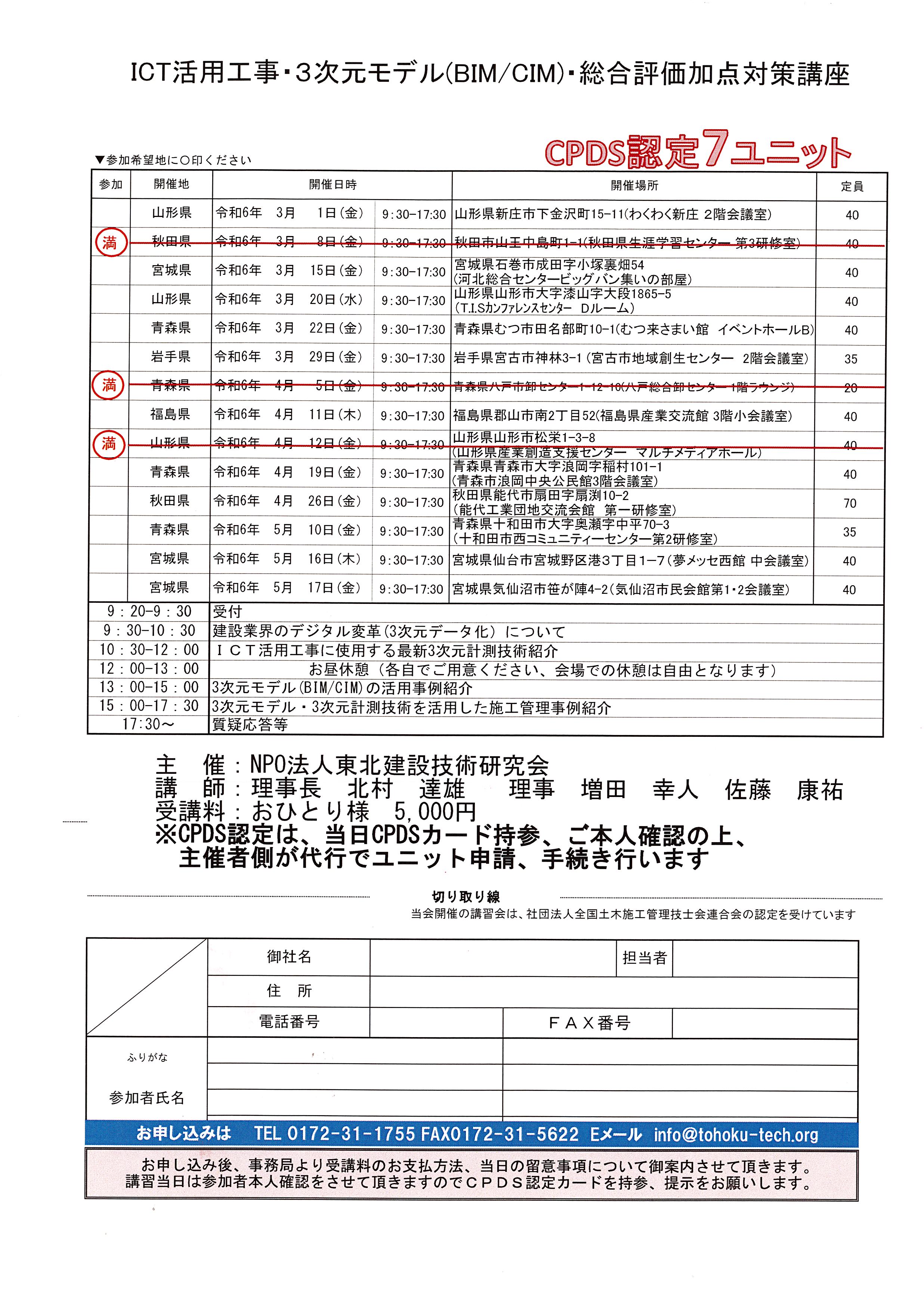 ※お手元の申込用紙で受付可能です。余白に受講希望日のご記入をお願いいたします。会場を増やす度に申込用紙を改定しています。