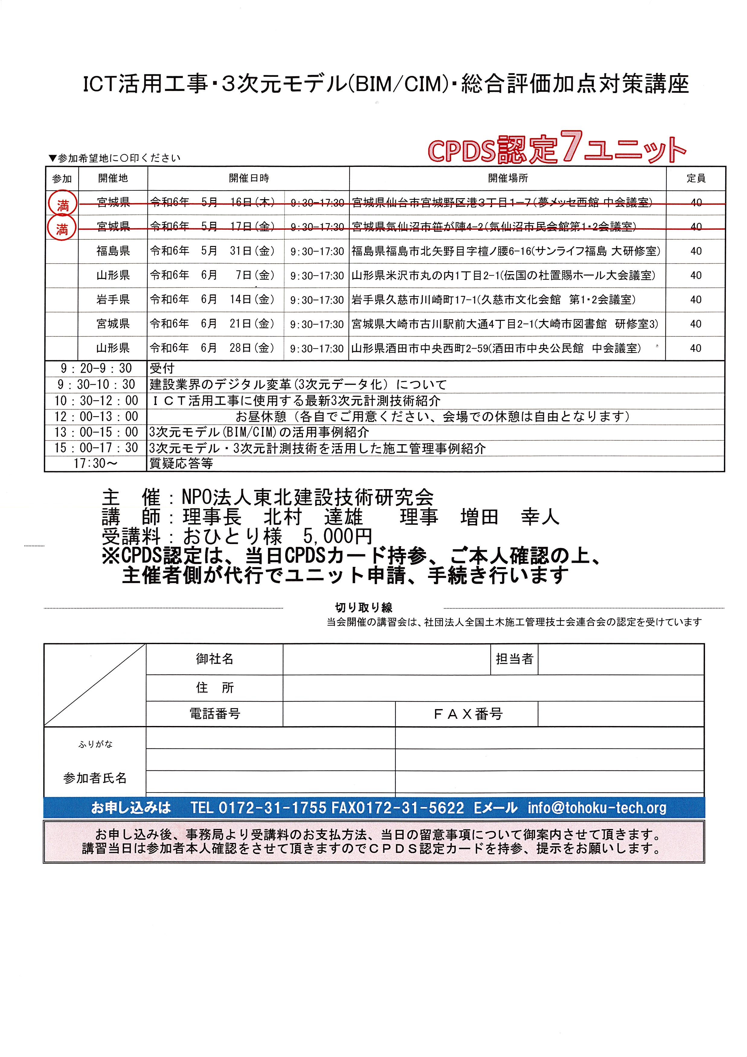5月16日木曜、翌17日金曜と2日間連続、宮城県でCPDS認定講習会