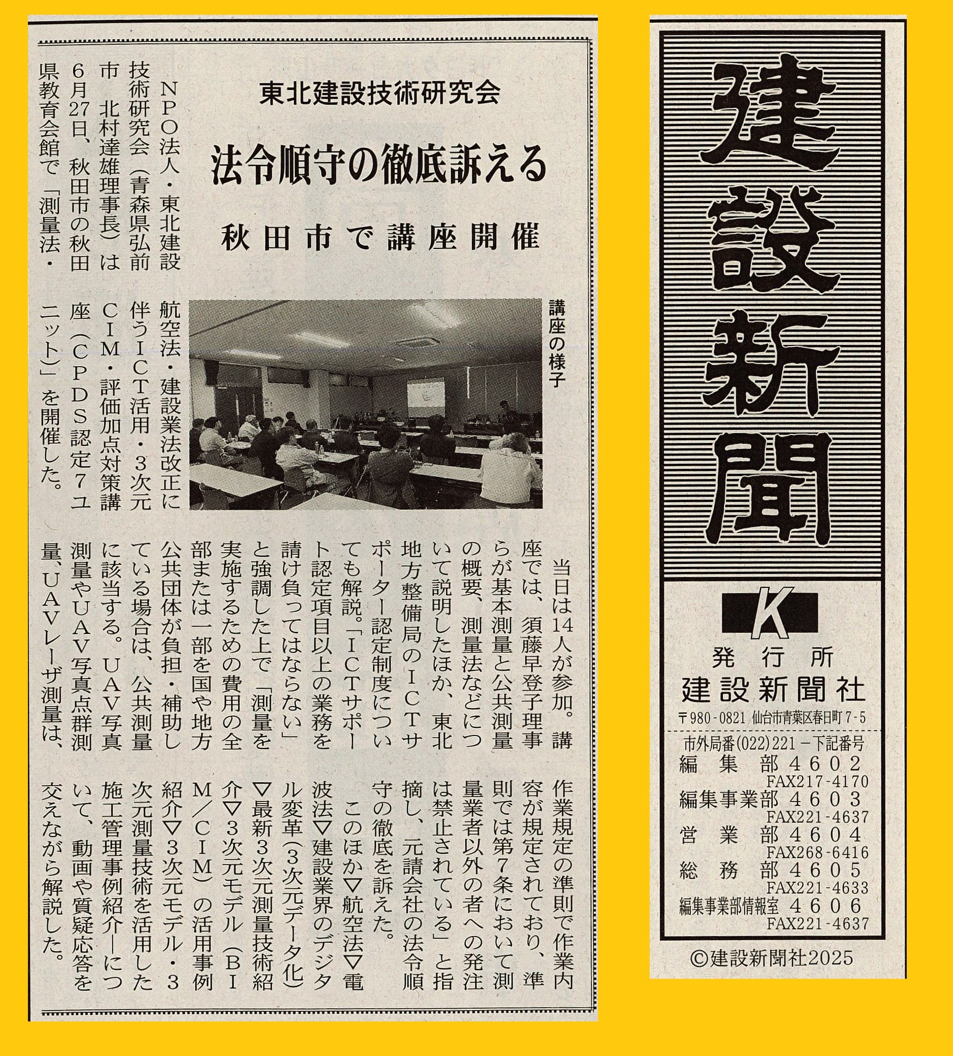 先日秋田市で開催されました、当研究会主催CPDS認定講習会の記事が