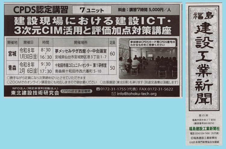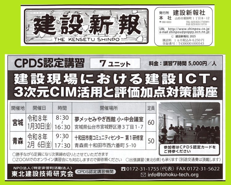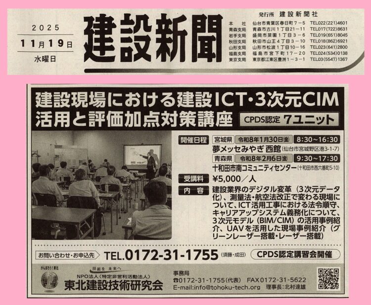 日刊青森建設工業新聞様、建設新聞様、建設新報様、日刊岩手建設工業新聞様、福島建設工業新聞様、日刊秋田建設工業新聞様、掲載ありがとうございます!