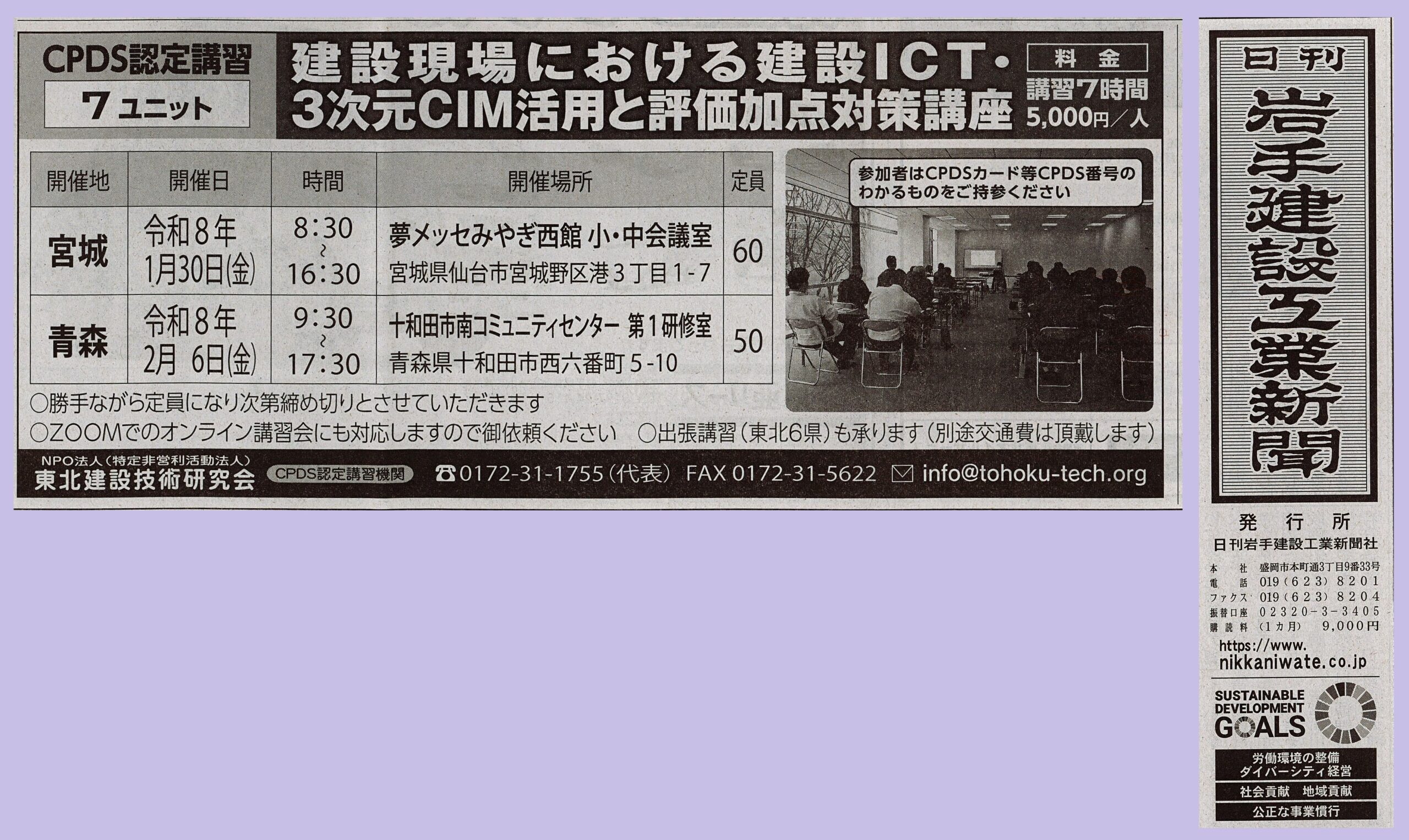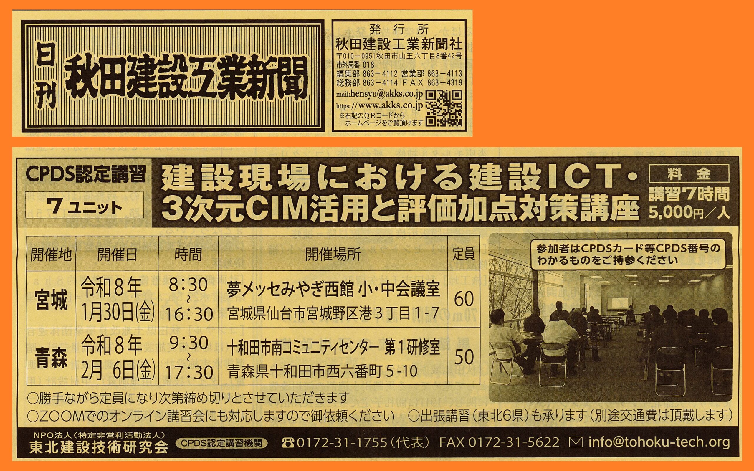 日刊青森建設工業新聞様、建設新聞様、建設新報様、日刊岩手建設工業新聞様、福島建設工業新聞様、日刊秋田建設工業新聞様、掲載ありがとうございます!