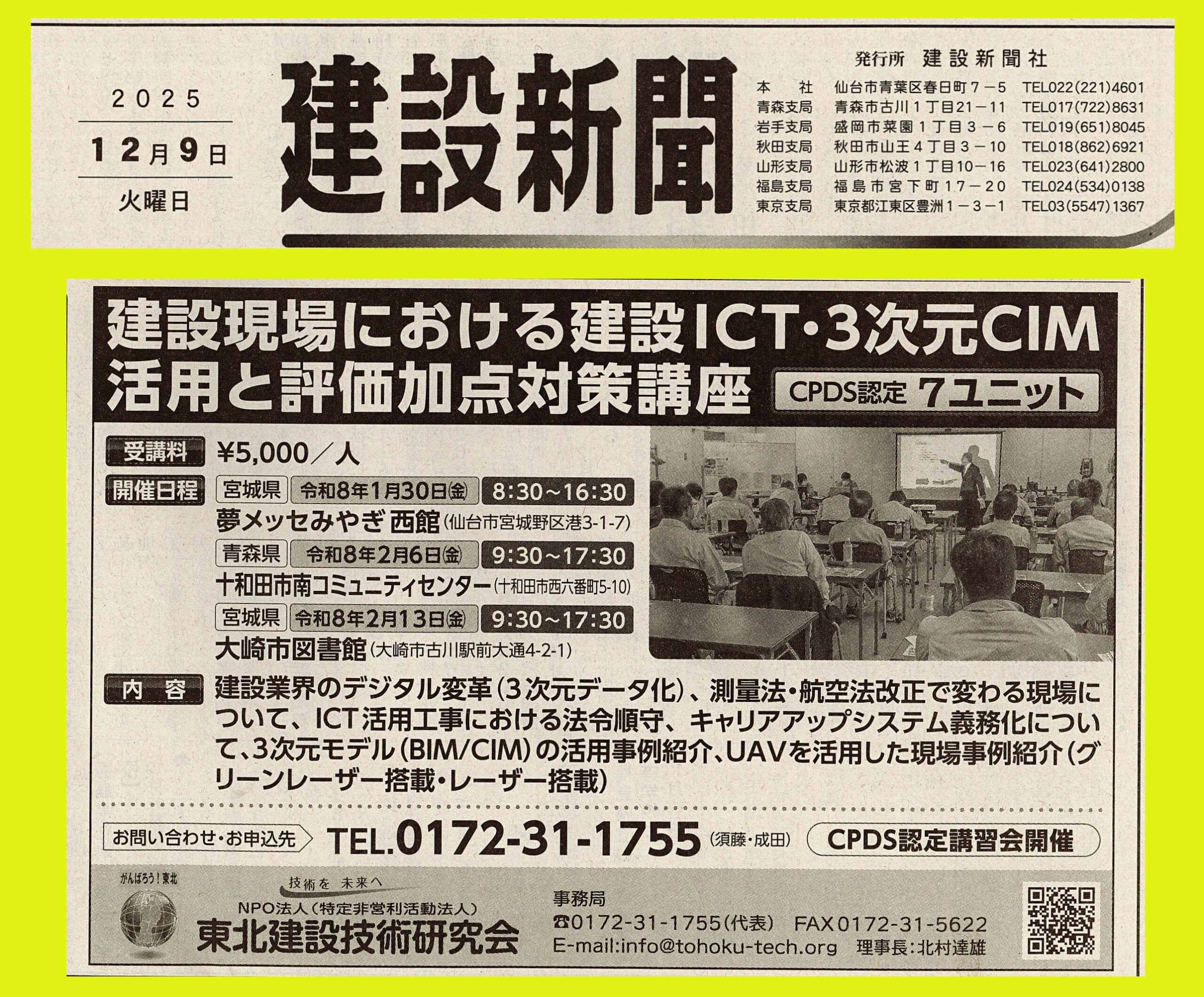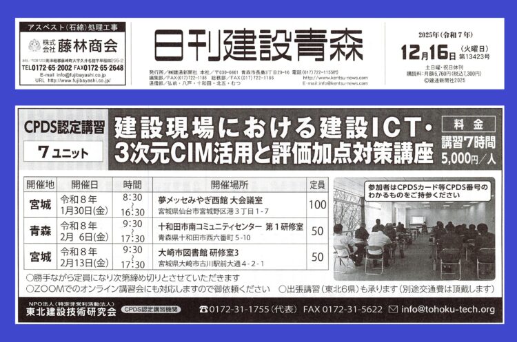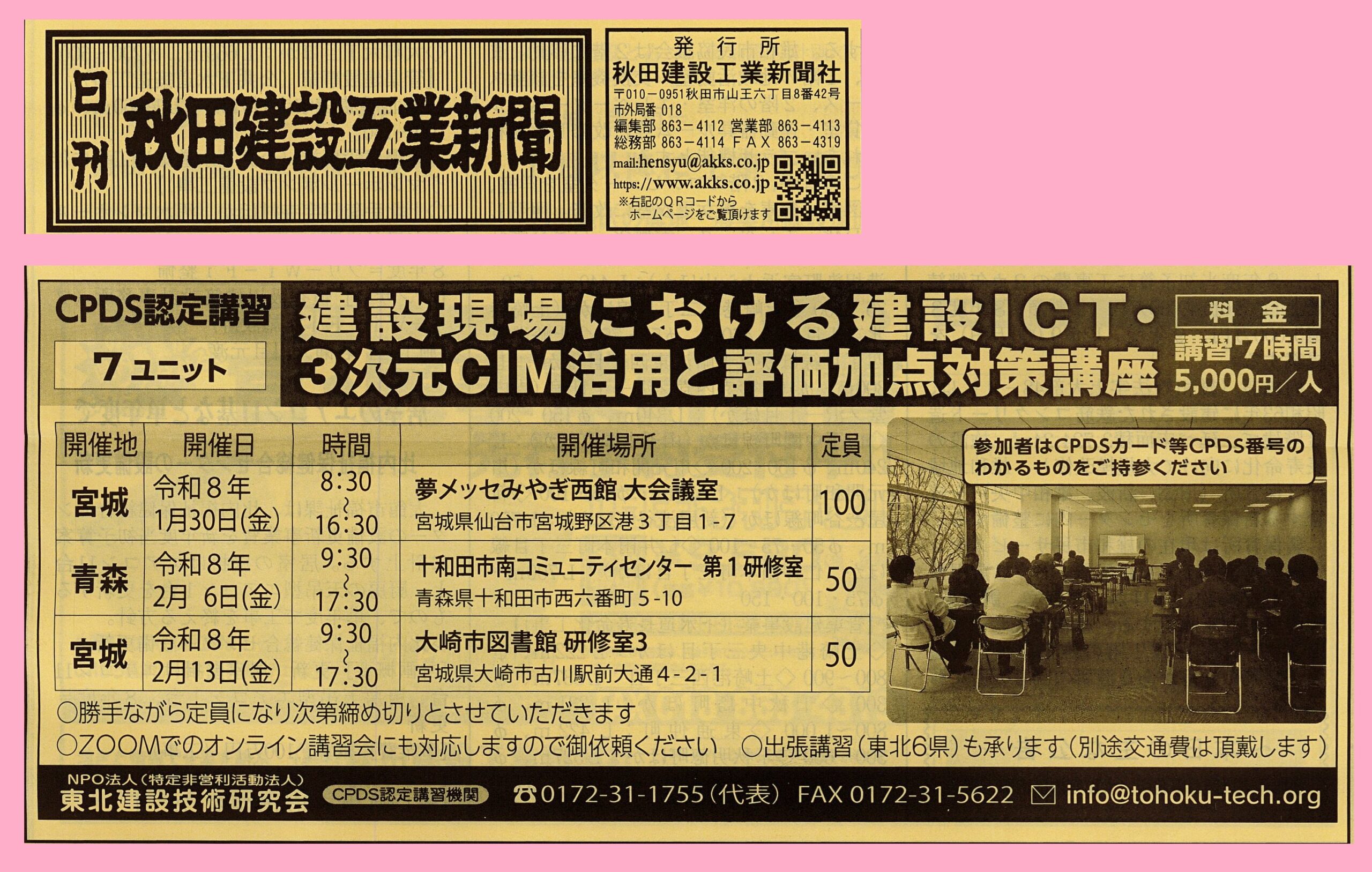 建設新聞様、日刊秋田建設工業新聞様、日刊建設青森様、掲載ありがとうございます!