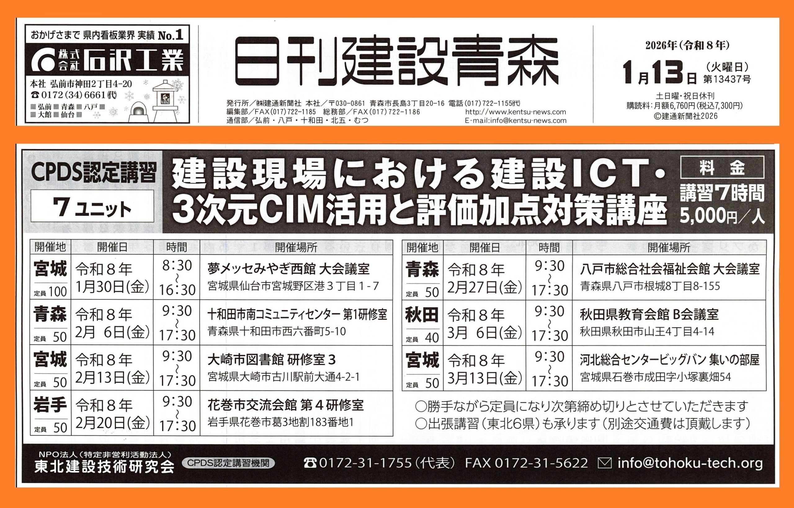 日刊建設青森様、日刊秋田建設工業新聞様、掲載ありがとうございます!