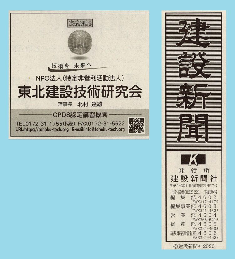 建設新聞様には研究会の広告も掲載いただきました。掲載ありがとうございます!