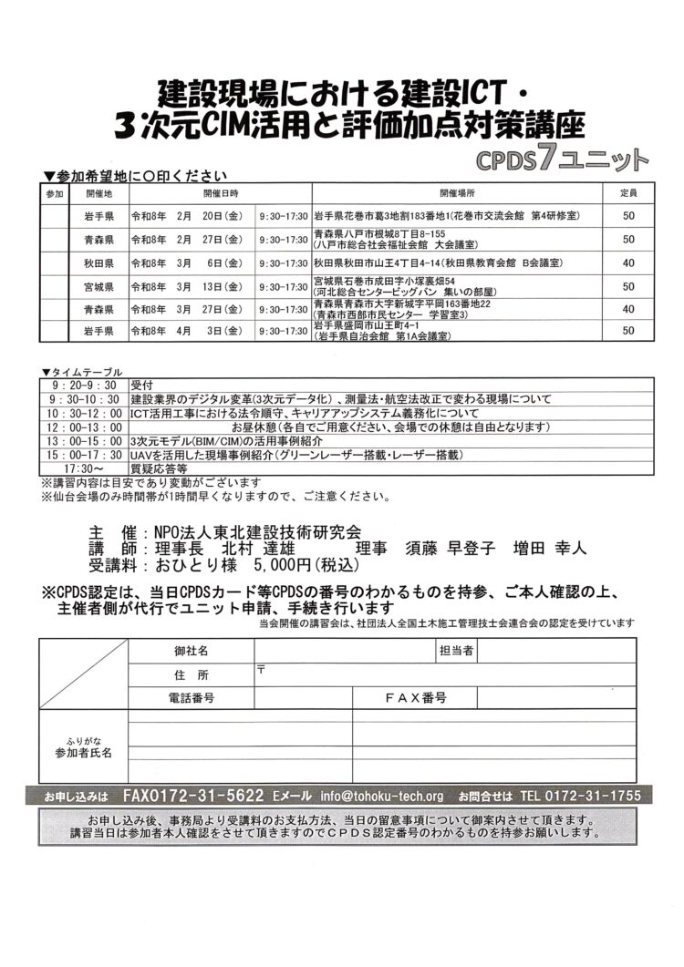 2月13日金曜日、CPDS認定講習会7ユニット付 宮城県大崎市開催しました