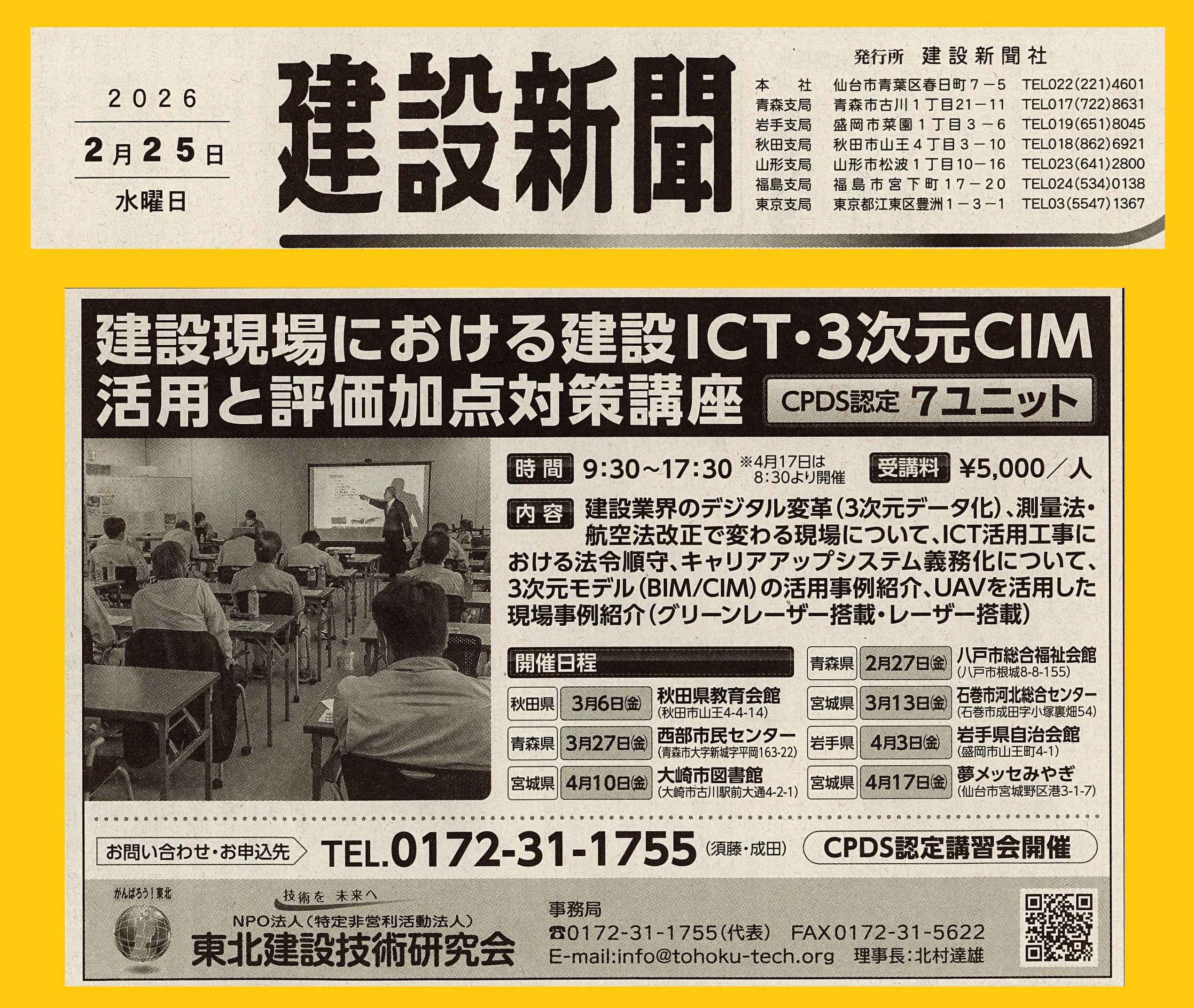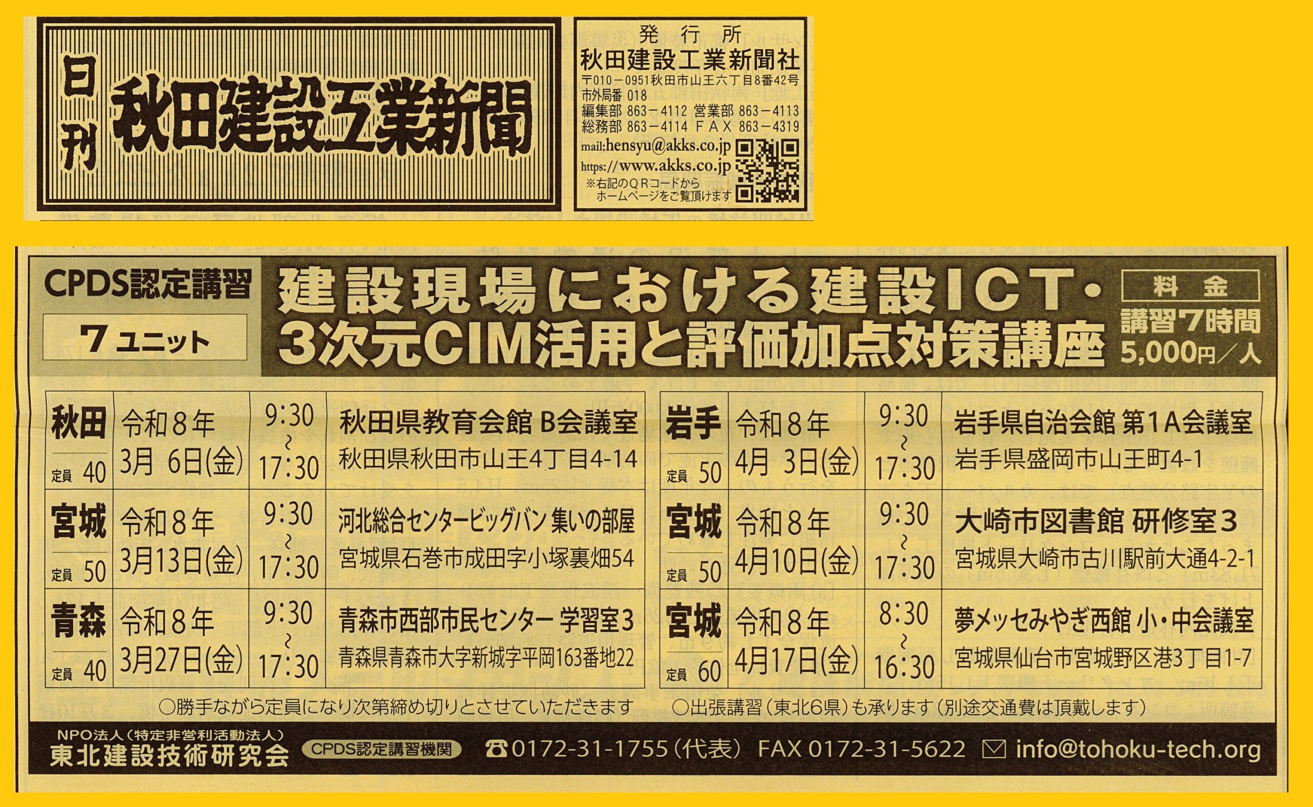 建設山形様、日刊秋田建設工業新聞様、建設新聞様、掲載ありがとうございます。