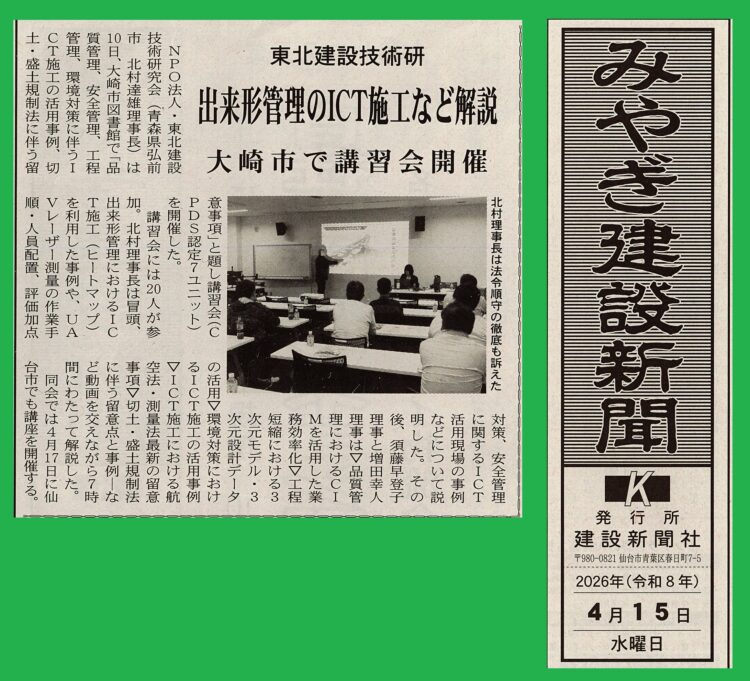 建設新聞様、みやぎ建設新聞様、掲載ありがとうございます!